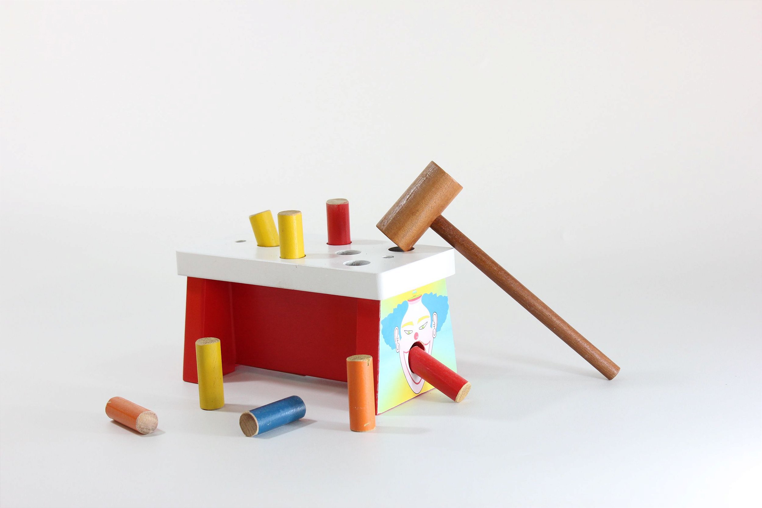 Material: madeira resistente, peças coloridas e martelinho seguro